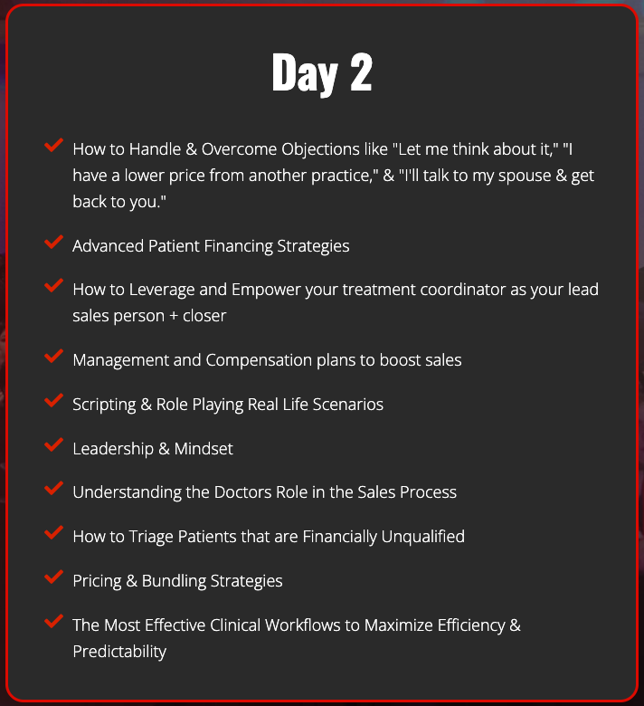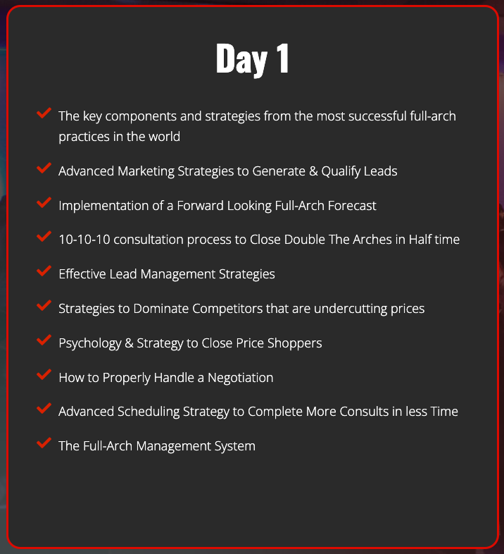 Any success at scale revolves around building and empowering a team. And dentistry is no different. This conference is dedicated to demonstrating the tremendous impact that Team-Based Sales/Business Training can have on every facet of your implant practice. This event brings together thousands of leading dental implant clinicians, treatment coordinators, office managers, marketing directors, & receptionists who are keen on scaling full-arch production and perfecting the system required to attract, close, and complete these cases as a team.